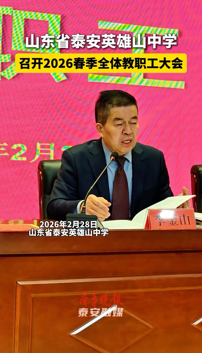 果然视频丨山东省泰安英雄山中学召开2026春季全体教职工大会齐鲁晚报·齐鲁壹点客户端 16:17原创齐鲁晚报·齐鲁壹点 薛小东 2026年2月28日,山东省泰安英雄山中学召开2026春季全体教职工大会。