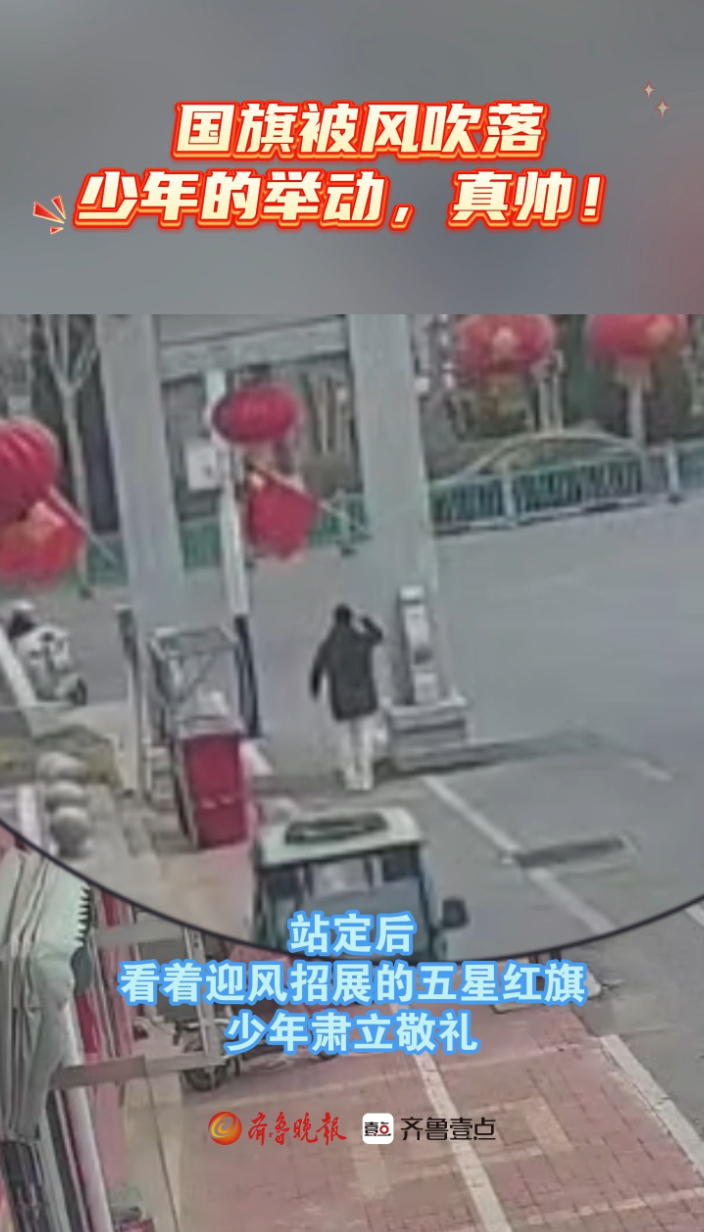 国旗被风吹落,德州少年的举动,真帅!齐鲁晚报·齐鲁壹点客户端 18:02原创2月21日,德州市第二中学学生裴明昊在经过天衢新区小申便民市场时,发现市场牌坊前悬挂的国旗被大风吹落在地。他立即上前拾起,并登高将国旗重新挂回高处。站定后,看着迎风招展的五星红旗,少年肃立敬礼。(齐鲁晚报·齐鲁壹点 郭华春)