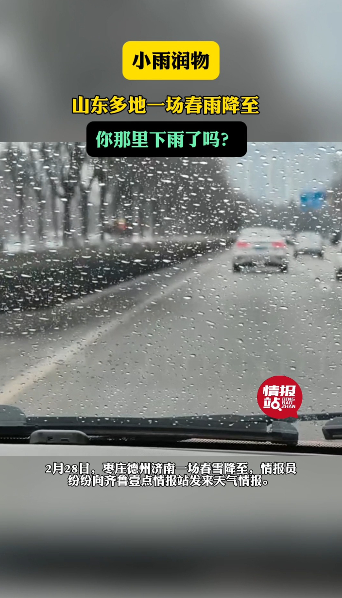 天气情报站|小雨润物!山东多地一场春雨降至,你那里下雨了吗? 19:10 大众报业·齐鲁壹点 微信扫码扫码下载客户端2月28日,枣庄、德州、济南迎来一场春雨,情报员们纷纷向壹点情报站发来天气情报,好雨知时节,当春乃发生,春雨降至温度有所下降,同时提醒市民朋友,及时添衣。