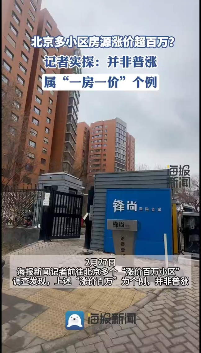 针对该传言,2月27日,海报新闻记者前往北京多个小区进行了实地探访,发现“涨价百万”其实仅为个例。