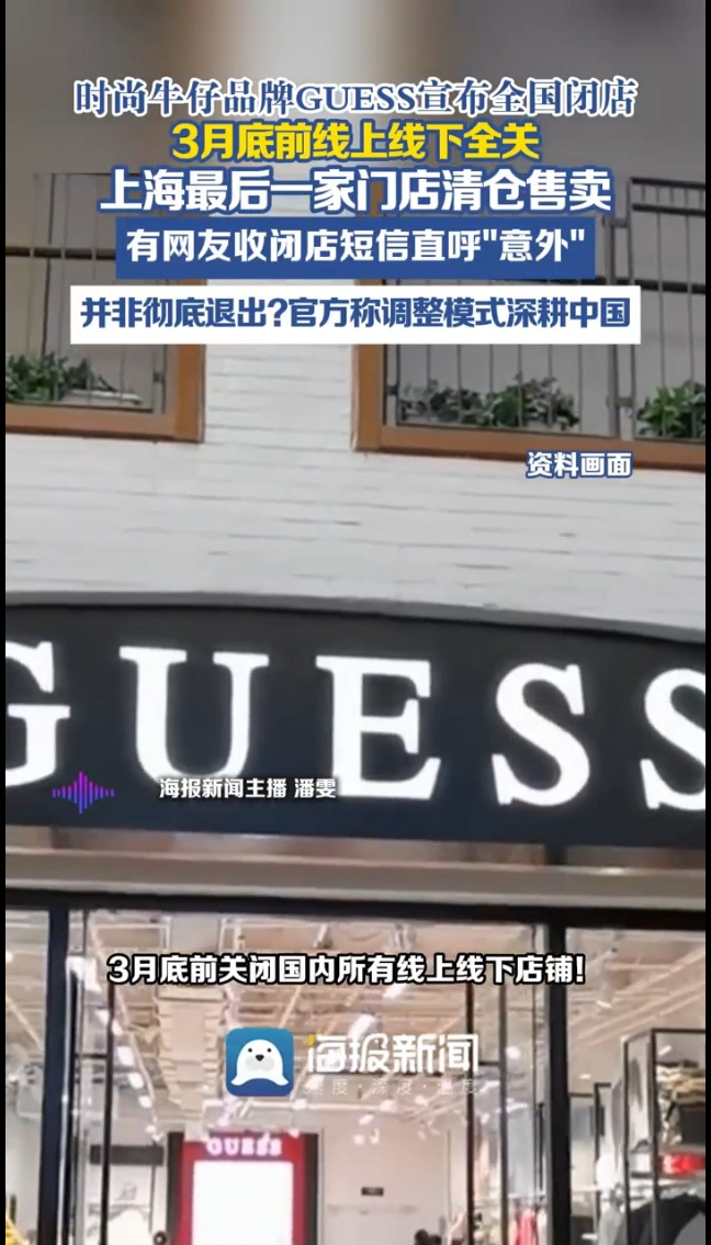 太突然!美国时尚品牌GUESS官宣,3月底前关闭国内所有线上线下店铺!