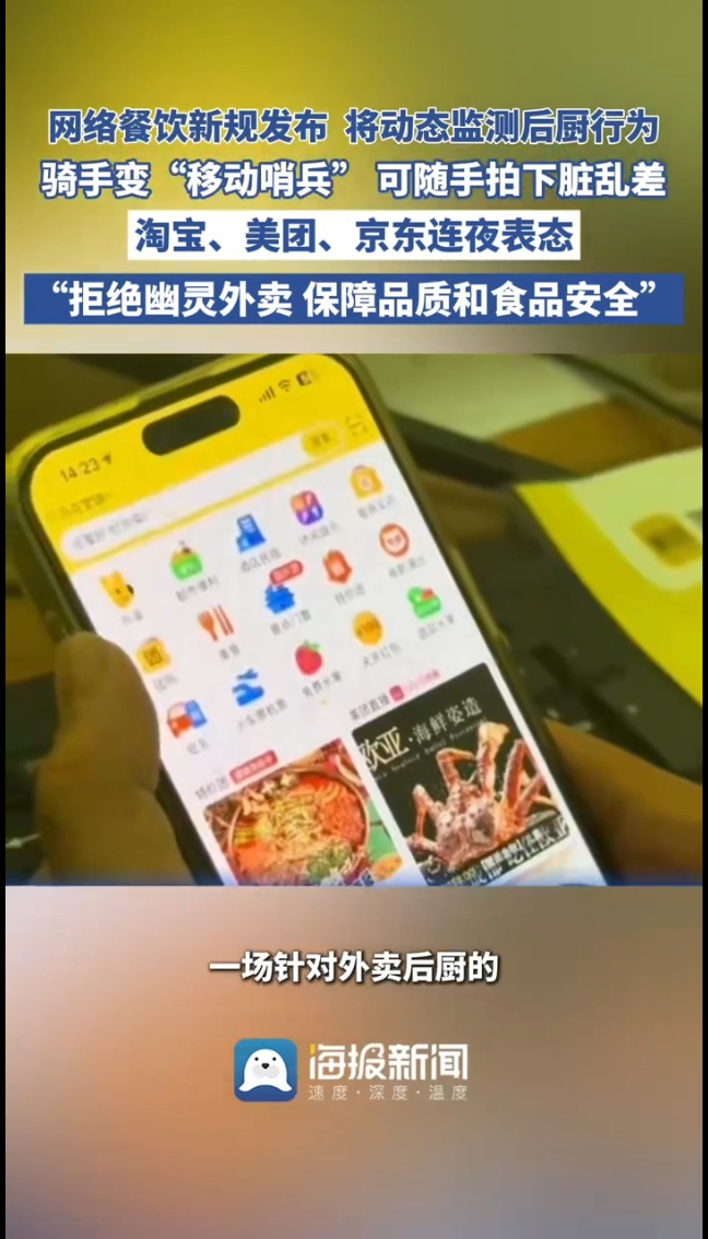 此外,淘宝闪购推出“3+1+AI”体系,骑士随手拍配合AI快速响应;美团说今年已有40多万商家开通“明厨亮灶”,还要研发后厨预警;京东外卖直接视频验真、照片复检,还推出“七鲜小厨”后厨直播,食材全公示。