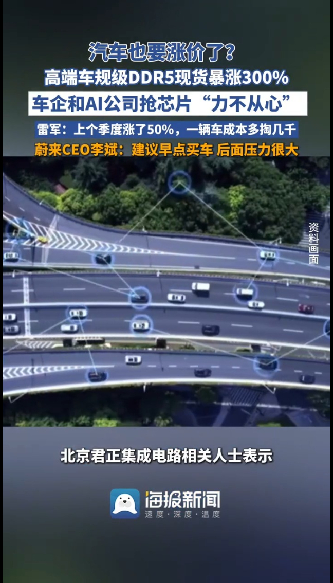 主播说|汽车也要涨价了 高端车规级DDR5现货暴涨300% 车企和AI公司抢芯片“力不从心”
