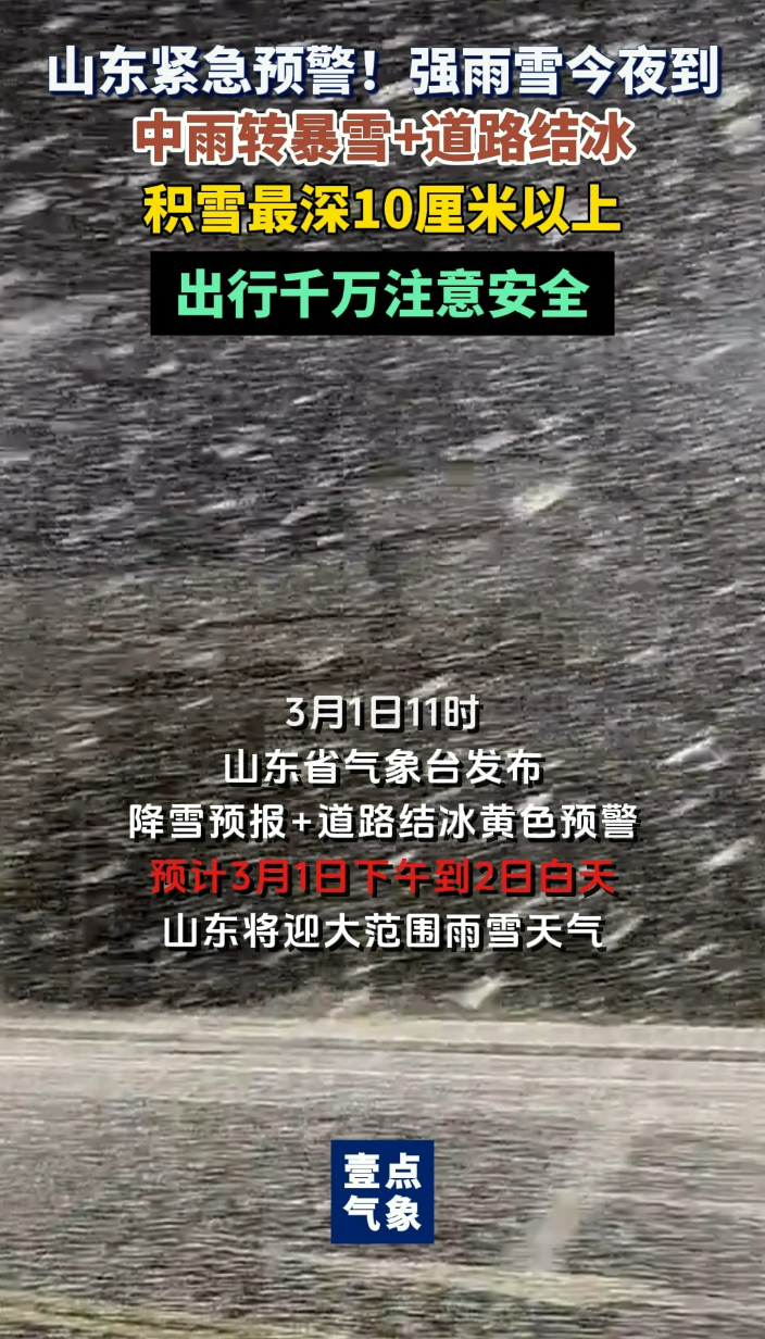 壹点气象|山东紧急预警!强雨雪今夜到,积雪最深10厘米以上