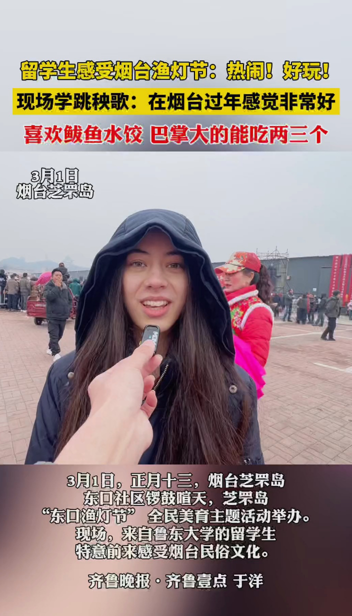 果然视频|留学生体验渔灯节:热闹好玩!在烟台过年非常好齐鲁晚报·齐鲁壹点客户端 19:01原创3月1日,正月十三,烟台芝罘岛“东口渔灯节” 全民美育主题活动举办。留学生体验烟台渔灯节:热闹!好玩!现场学跳秧歌,直言“在烟台过年感觉非常好”。(齐鲁晚报·齐鲁壹点 于洋)