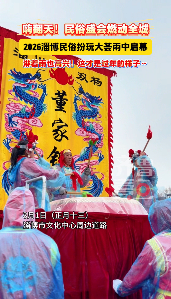 嗨翻天!2026淄博民俗扮玩大荟雨中启幕,盛会燃动全城~“淋着雨也高兴,这才是过年的样子~”
