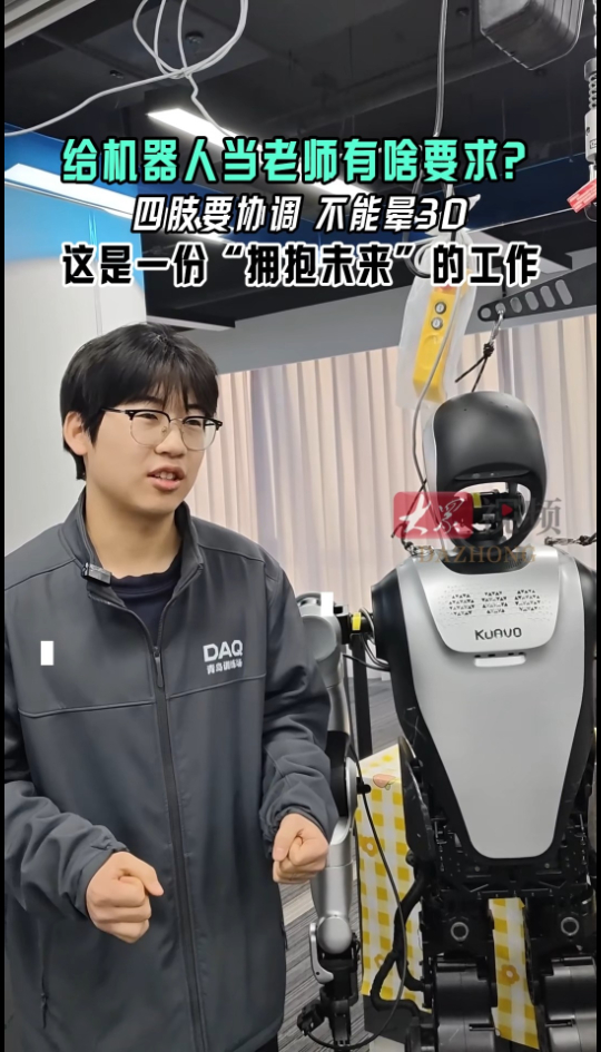 在青岛市人形机器人数据采集训练场中,有这样一群年轻人在给人形机器人“当老师”。