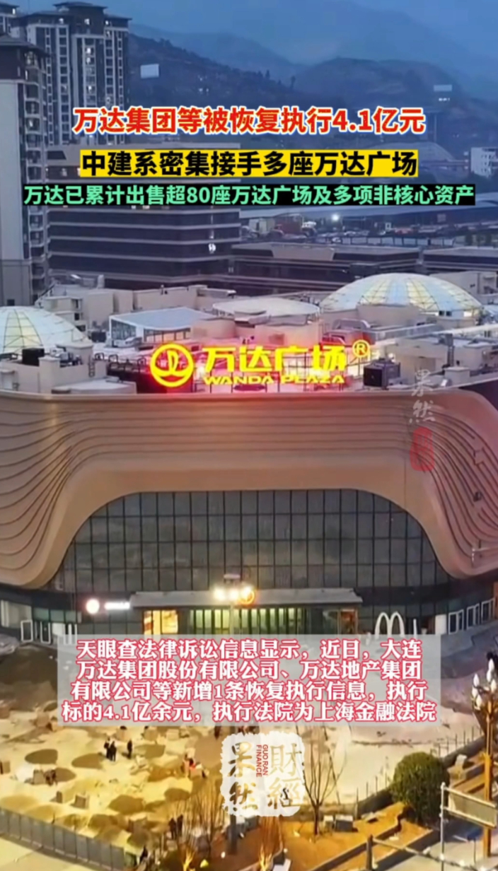 果然财经|万达被恢复执行4.1亿,中建系密集接盘万达广场