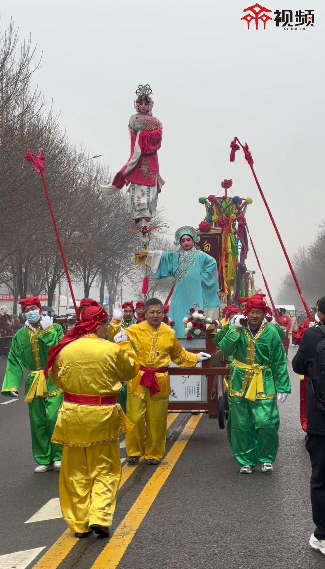 3月2日,在淄博市周村区民俗扮玩活动现场,淄博市周村区丝绸路街道胜利社区的芯子表演《人面桃花》《白蛇传》惊艳全场。“周村芯子”是淄博一种独特的民间表演艺术形式,演员高悬空中,脚踩花瓶、鱼缸等物品,完全依靠固定在“芯底”上的一条铁棍(即俗称的“芯子”)支撑。这根“铁芯子”被服饰巧妙隐藏,小演员被稳稳固定在高空,看似凌空而立,实则安全精巧。作为国家级非物质文化遗产,它融合戏曲、杂技与铁艺工艺,是淄博极具代表性的元宵民俗表演。