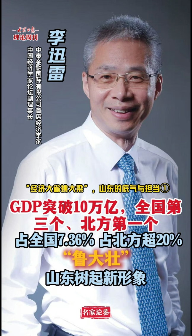 去年年底,中央经济工作会议对2026年经济工作作出部署,山东省委经济工作会议也作出了相应安排。去年是“十四五”收官之年,山东成为全国第三个、北方第一个地区生产总值过10万亿的省份。今年是“十五五”开局之年,作为经济大省,山东如何更好地走在前、挑大梁?大众日报理论周刊特邀中泰金融国际有限公司首席经济学家、中国经济学家论坛副理事长李迅雷团队作出深入解析。