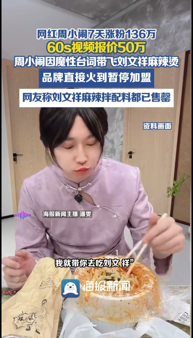 3月2日,刘文祥麻辣烫直接宣布:暂停新合作业务咨询,为期一个月!火到连加盟都不敢收了,这波“紫薯精”的带货力,谁看了不说一句:真·顶流!