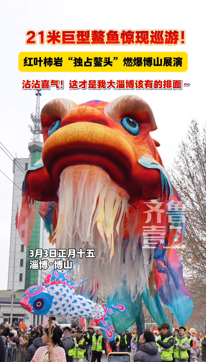 21米巨型鳌鱼惊现巡游!红叶柿岩“独占鳌头”燃爆博山元宵展演。沾沾喜气!这才是我大淄博该有的排面~