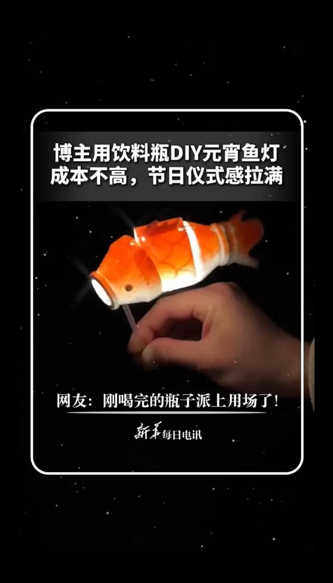 博主用饮料瓶DIY元宵鱼灯,成本不高,节日仪式感拉满