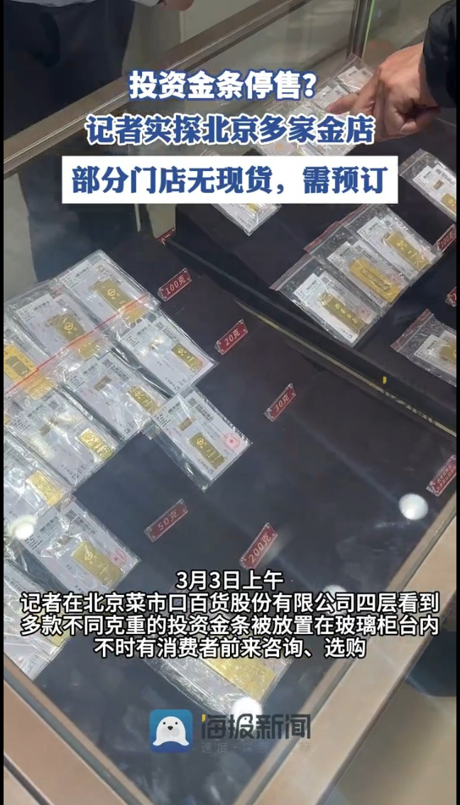 投资金条停售?记者实探北京多家金店:部分门店无现货,需预订
