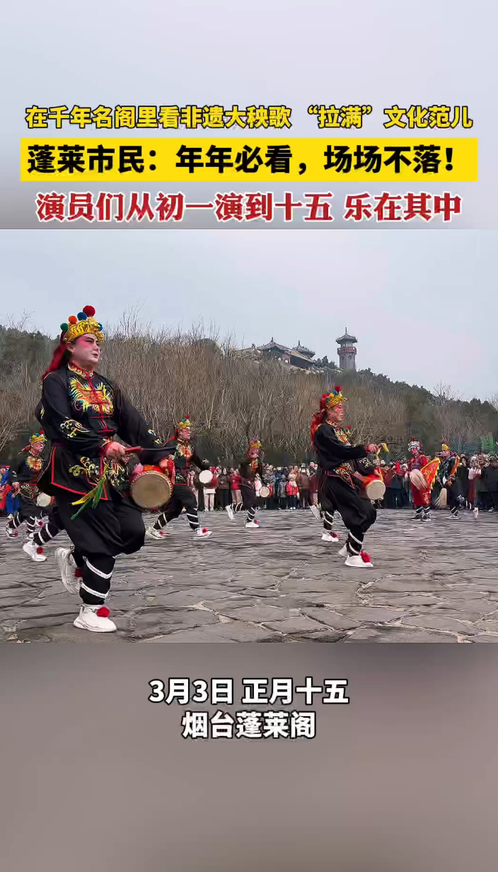 果然视频|元宵节在烟台千年名阁看非遗大秧歌,“拉满”文化范儿齐鲁晚报·齐鲁壹点客户端 昨天22:43原创3月3日,正月十五,蓬莱市民和游客一早登上蓬莱阁,在千年名阁里看非遗大秧歌,“拉满”文化范儿!市民表示,年年必看,场场不落!演员们从初一演到十五,乐在其中。(齐鲁晚报·齐鲁壹点 于洋 秦雪丽)