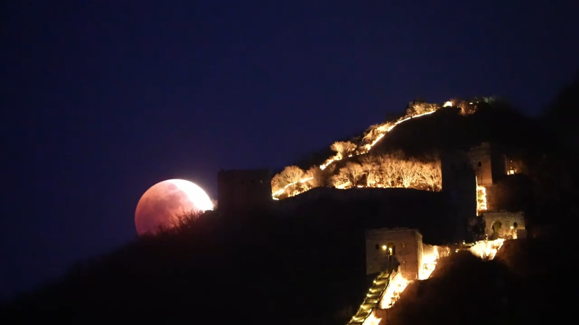 月全食升起在司马台长城人民日报 06:47元宵之夜,本年度我国境内唯一可见的月全食震撼登场,一轮 “红月亮” 高悬天际,完整演绎 “天狗食月” 的奇妙历程。摄影师 @Jeff的星空之旅,登临北京司马台长城,拍摄下月食和万里长城同框的震撼画面