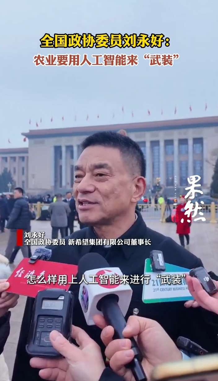 两会声音|全国政协委员刘永好:农业要用人工智能来“武装”齐鲁晚报·齐鲁壹点客户端 16:22原创全国政协委员、新希望集团董事长刘永好认为,农业在新的格局下要用上人工智能来“武装”,要关注农村的发展、农民的培训。 (齐鲁晚报·齐鲁壹点记者 杨璐 李文璇 刘志坤)