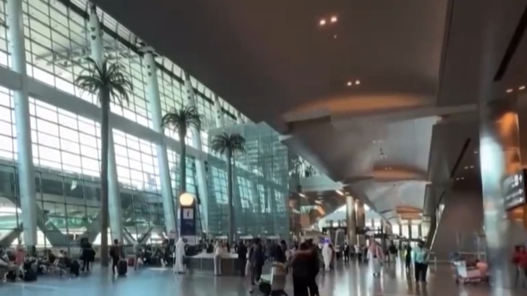 中东多国关闭领空,上万航班取消,三大航空枢纽同时停运。 (央视新闻)