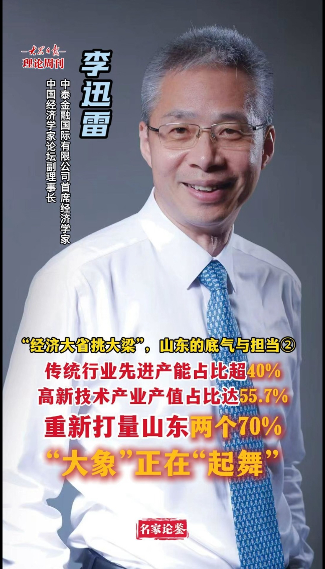 去年年底,中央经济工作会议对2026年经济工作作出部署,山东省委经济工作会议也作出了相应安排。去年是“十四五”收官之年,山东成为全国第三个、北方第一个地区生产总值过10万亿的省份。今年是“十五五”开局之年,作为经济大省,山东如何更好地走在前、挑大梁?大众日报理论周刊特邀中泰金融国际有限公司首席经济学家、中国经济学家论坛副理事长李迅雷团队作出深入解析。