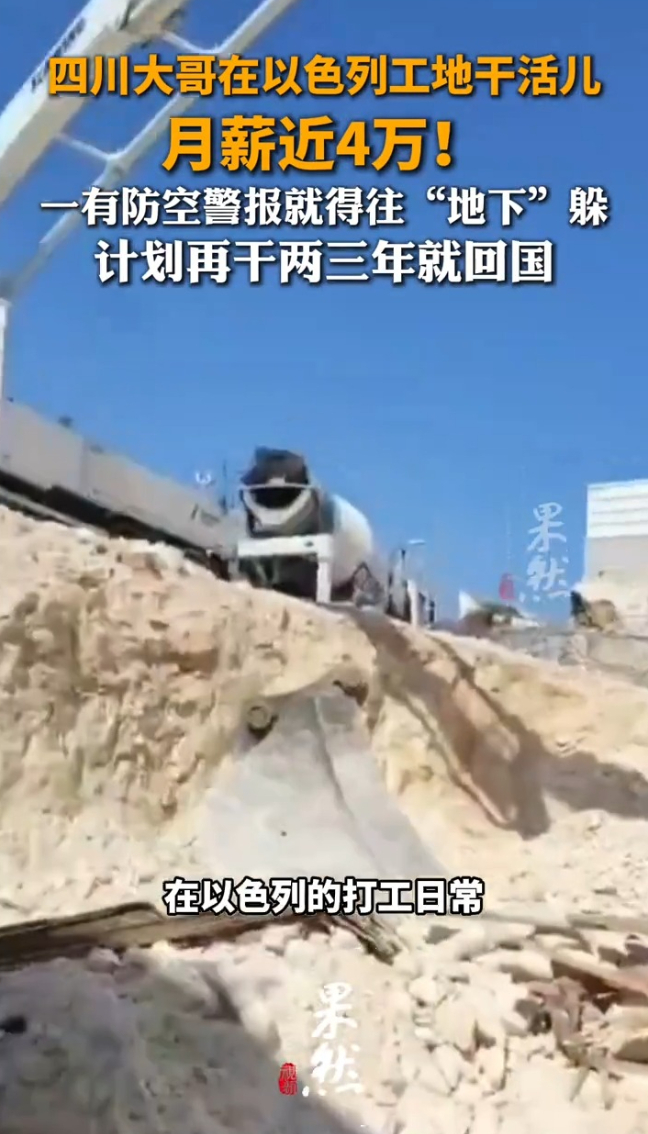 四川大哥在以色列工地干活儿 月薪近4万!受战争影响,一有警报就得往“地下”躲 计划再干两三年就回国齐鲁晚报·果然视频 20:45四川大哥在以色列工地干活儿 月薪近4万!受战争影响,一有警报就得往“地下”躲 计划再干两三年就回国