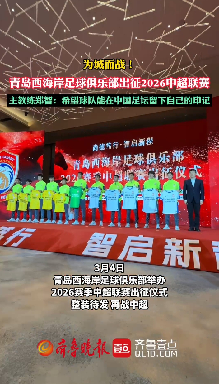 果然视频丨为城而战!青岛西海岸足球俱乐部出征2026中超联赛齐鲁晚报·齐鲁壹点客户端 19:24原创3月4日,青岛西海岸足球俱乐部举办2026赛季中超联赛出征仪式,整装待发,再战中超。仪式现场,青岛西海岸足球俱乐部主教练郑智表示,希望球队每年都能稳步前进,在中国足坛留下自己的印记。 (齐鲁晚报·齐鲁壹点 徐润杰)