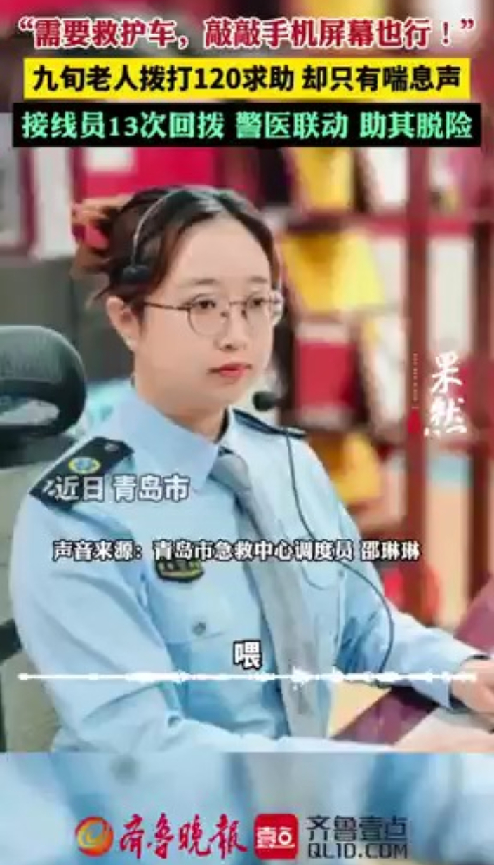 果然视频丨需要救护车敲手机屏幕!120调度员智破“无声”求救齐鲁晚报·齐鲁壹点客户端 19:26原创近日,青岛市急救中心调度员邵琳琳接到120救助电话,但对方却发不出声音。邵琳琳耐心引导,先后接听并回拨患者电话13次,与“110”警医联动沟通3次,最终成功获取患者家庭住址与家属信息,及时派出救护车并将其安全送往医院救治,目前,患者已成功脱险。 (齐鲁晚报· 齐鲁壹点 李自强 实习生 王颖馨)