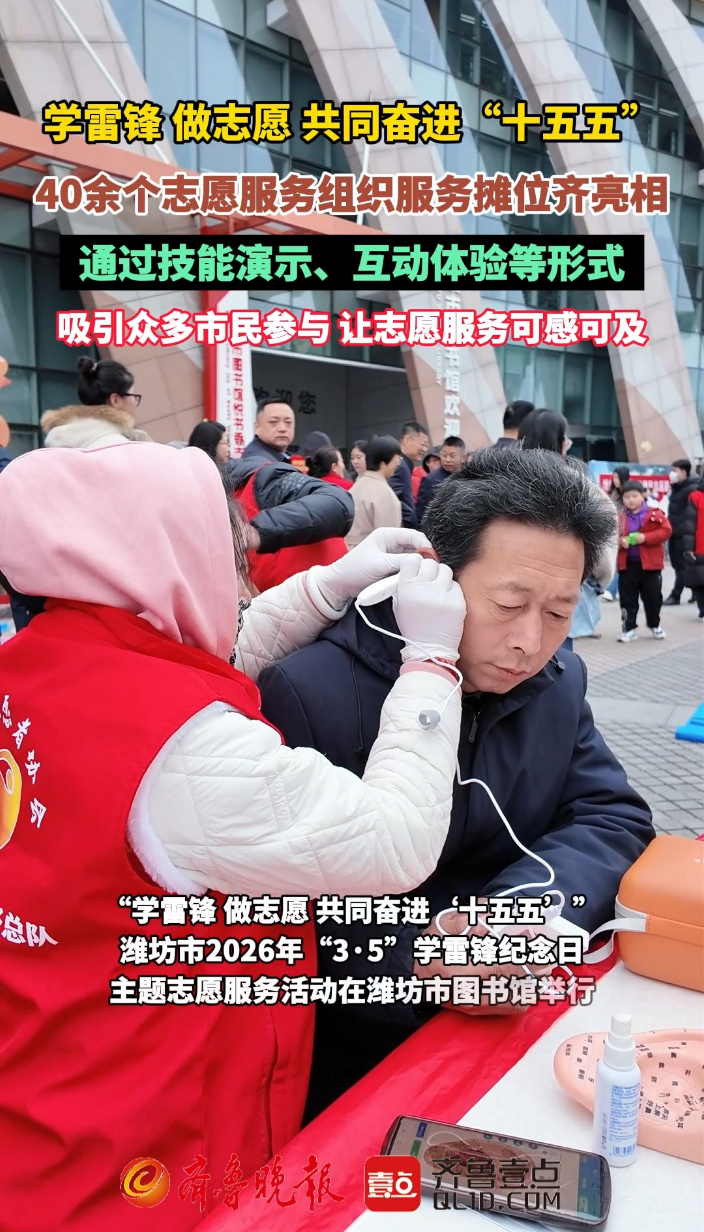 果然视频|40余个志愿服务组织摊位齐亮相,潍坊举办学雷锋活动齐鲁晚报·齐鲁壹点客户端 昨天22:45原创3月4日上午,“学雷锋 做志愿 共同奋进‘十五五’”潍坊市2026年“3·5”学雷锋纪念日主题志愿服务活动在潍坊市图书馆举行。潍坊市委社会工作部发布《学雷锋 做志愿 共同奋进“十五五”》倡议书,号召全市广大志愿者以实际行动践行雷锋精神,为更好潍坊建设贡献志愿力量。 齐鲁晚报·齐鲁壹点 吴昊
