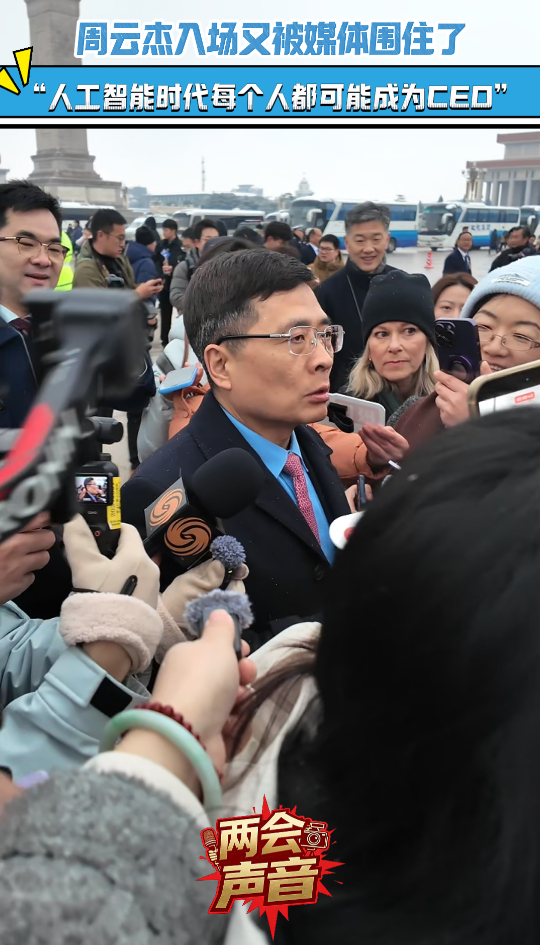 两会声音|周云杰入场又被媒体围住了:“人工智能时代每个人都可能成为CEO”大众新闻 10:42原创3月5日上午,十四届全国人大四次会议在人民大会堂举行开幕会。全国人大代表,海尔集团公司党委书记、董事局主席、首席执行官周云杰入场时接受媒体采访。他表示,人工智能时代每个人都可能成为CEO,都有可能创造一个伟大的公司。(大众新闻记者 马海燕 李钦鑫 刘英伟 谢巨洋 王亚明)