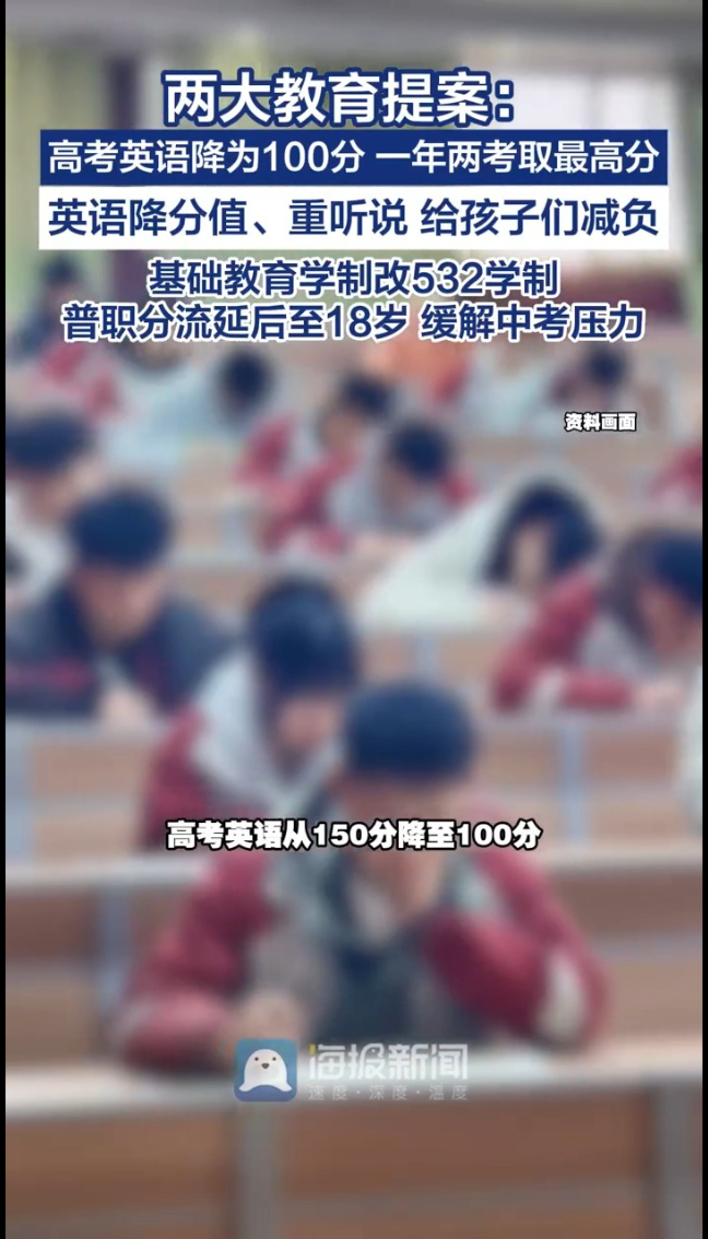 主播说丨两大教育提案:高考英语降为100分,一年两考取最高分,基础教育学制改532学制