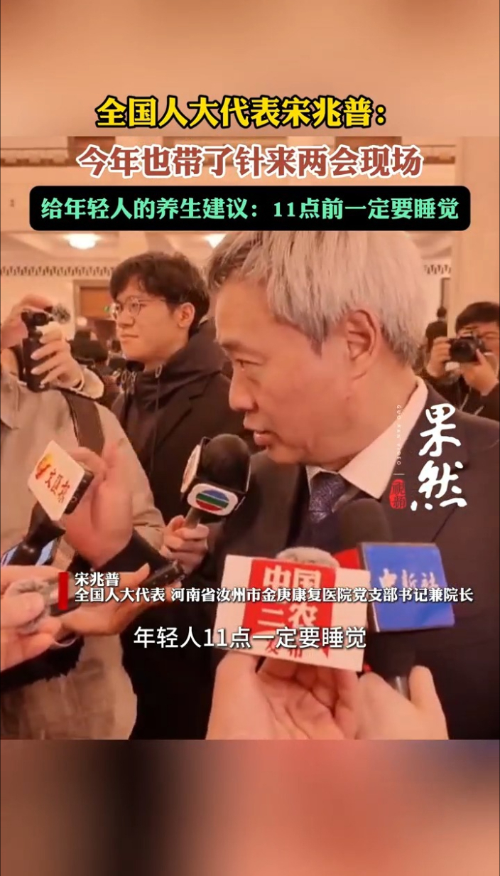 两会声音|全国人大代表宋兆普:年轻人晚上11点前一定要睡觉齐鲁晚报·齐鲁壹点客户端 12:27原创全国人大代表、河南省汝州市金庚康复医院党支部书记兼院长宋兆普接受记者采访时,提醒年轻人晚上11点前一定要睡觉,胆经和肝经一定要护好。(齐鲁晚报·齐鲁壹点记者 杨璐 李文璇 刘志坤)