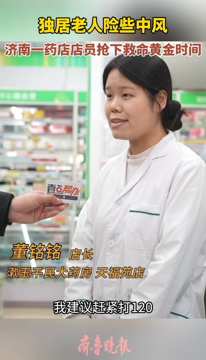 果然视频|独居老人险些中风,济南一药店店员抢下救命黄金时间齐鲁晚报·齐鲁壹点客户端 16:08原创近日,济南一独居老人险些中风,幸运的是,刚好被一群药店店员发现,及时施救后,成功抢下救命黄金时间。(齐鲁晚报·齐鲁壹点 见习记者 冯子芯)