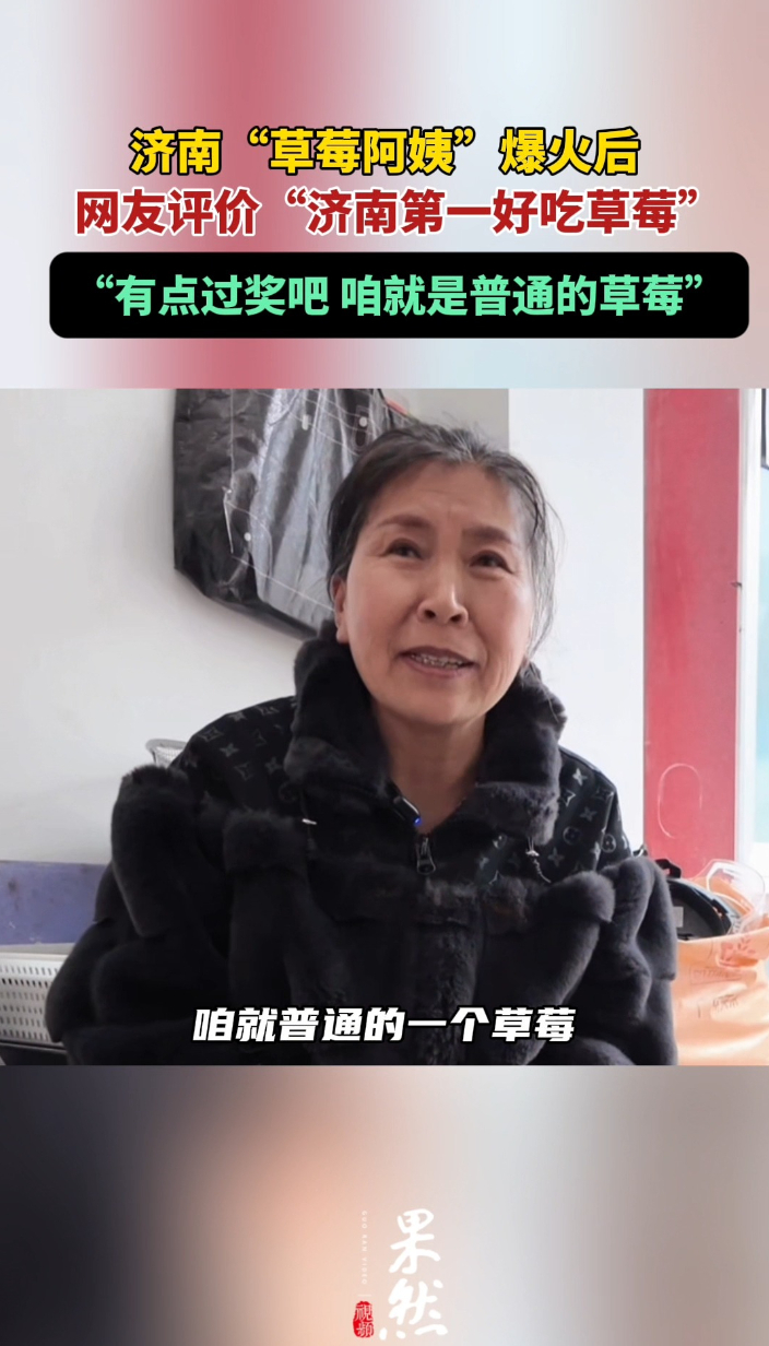 果然视频|“草莓阿姨”对网友评“济南第一好吃草莓”称过奖齐鲁晚报·齐鲁壹点客户端 09:44原创近日,济南市奥体龙湖天街附近的一处水果流动摊点,因一条网友发布的“太好吃”评价视频,意外在社交平台“火出了圈”。摊主邓洪岭售卖的盆装草莓吸引众多市民专程前来排队购买,她也因此被网友亲切地称为“草莓阿姨”。面对网友称其为“济南第一好吃草莓”,邓洪岭表示,有点过奖,就是普通的草莓,也有不好吃的时候。(齐鲁晚报 ·齐鲁壹点记者 管悦 江聆譞)