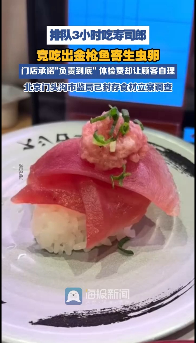 主播说|排队3小时吃寿司郎竟吃出寄生虫卵,市监局:已立案调查