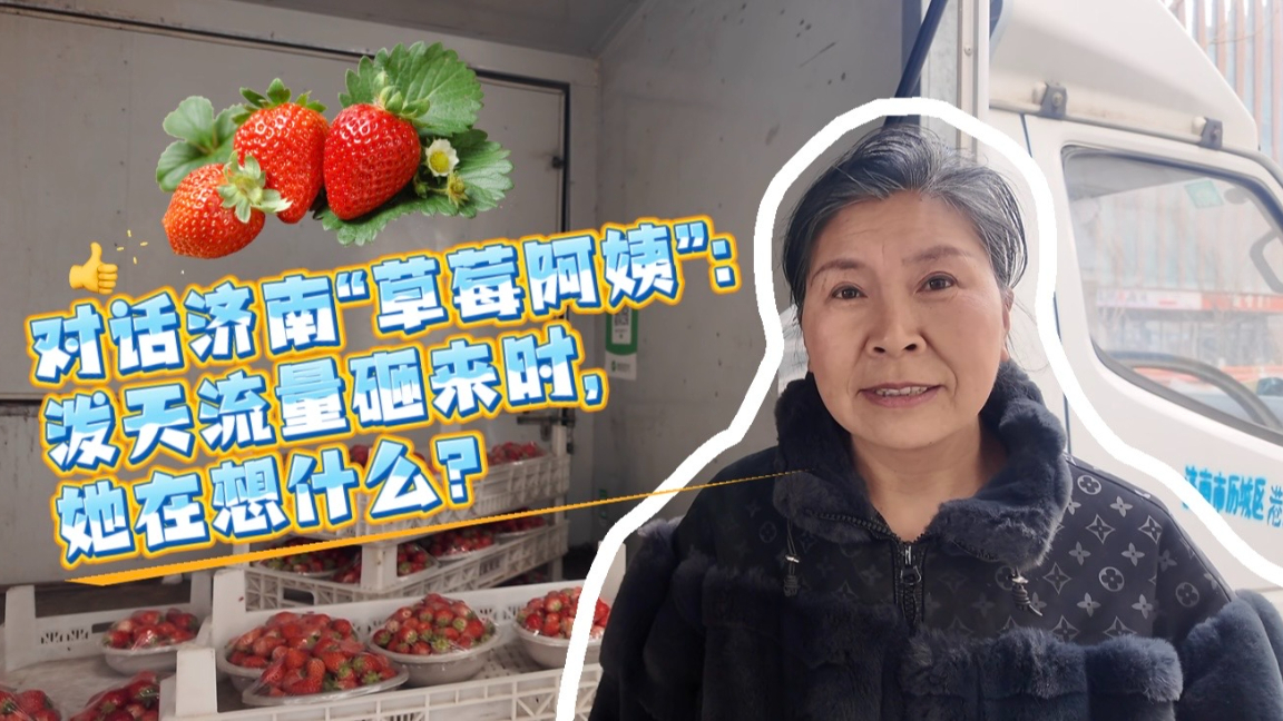 对话“草莓阿姨”:泼天流量砸来时,她在想什么?大众新闻 昨天17:59原创济南奥体天街附近,一辆装满草莓的小货车前,队伍拐了好几道弯。摊主邓洪岭卖水果十多年,从没见过这阵仗:200盆草莓,5分钟,抢光了,微信好友申请涌进来,“划不到头”。这位被网友赐名“草莓阿姨”的摊主,一夜之间,成了济南的新晋顶流。记者来到草莓摊位前,对话“草莓阿姨”,一起探索流量密码。(大众新闻记者 隋乔 蔡昕然 策划 吴永功)