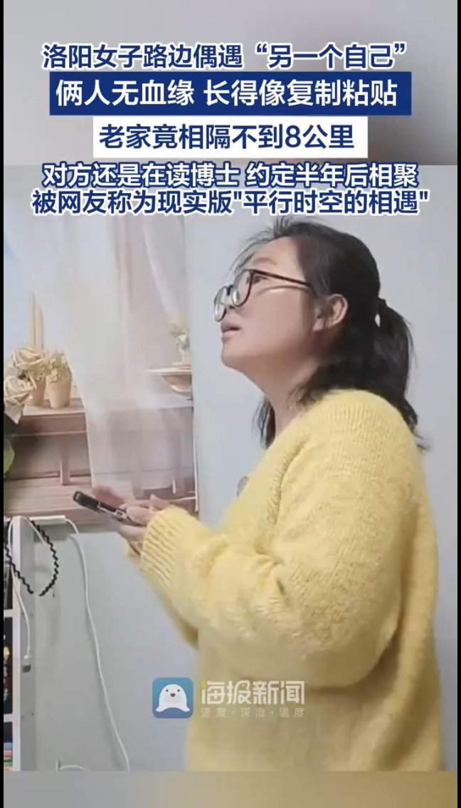 太神奇了!河南洛阳一女子路边偶遇“另一个自己”,无血缘却长得一模一样。