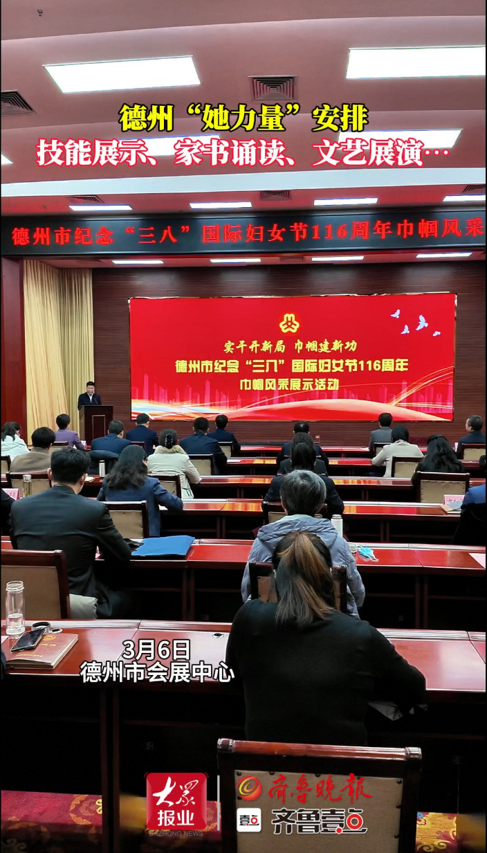 果然视频 | 德州“她力量”安排:技能展示、家书诵读…齐鲁晚报·齐鲁壹点客户端 昨天21:39原创3月6日,德州市举办“实干开新局 巾帼建新功”主题活动纪念“三八”国际妇女节116周年,活动表彰“全国三八红旗手”“全国巾帼文明岗”等先进。本次活动旨在鼓励广大妇女铸牢信仰、勇于担当、倡树文明、锤炼本领,凝聚“她力量”助力现代化强市建设。(齐鲁晚报·齐鲁壹点 孙文丽)