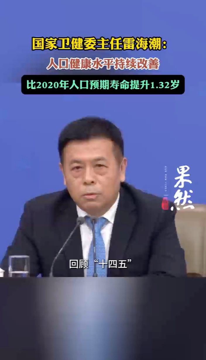 两会声音丨国家卫健委主任雷海潮:2025年人均预期寿命为79.25岁齐鲁晚报·齐鲁壹点客户端 13:23原创3月7日,国家卫健委主任雷海潮在十四届全国人大四次会议民生主题记者会上表示,回顾“十四五”,我们在人口的健康水平方面持续改善,2025年的人均预期寿命为79.25岁,比2020年的人口预期寿命提升了1.32岁,年均增长0.26岁,放在中高收入的国家当中也是令人骄傲的水平。(齐鲁晚报·齐鲁壹点 刘志坤 鹿青松)
