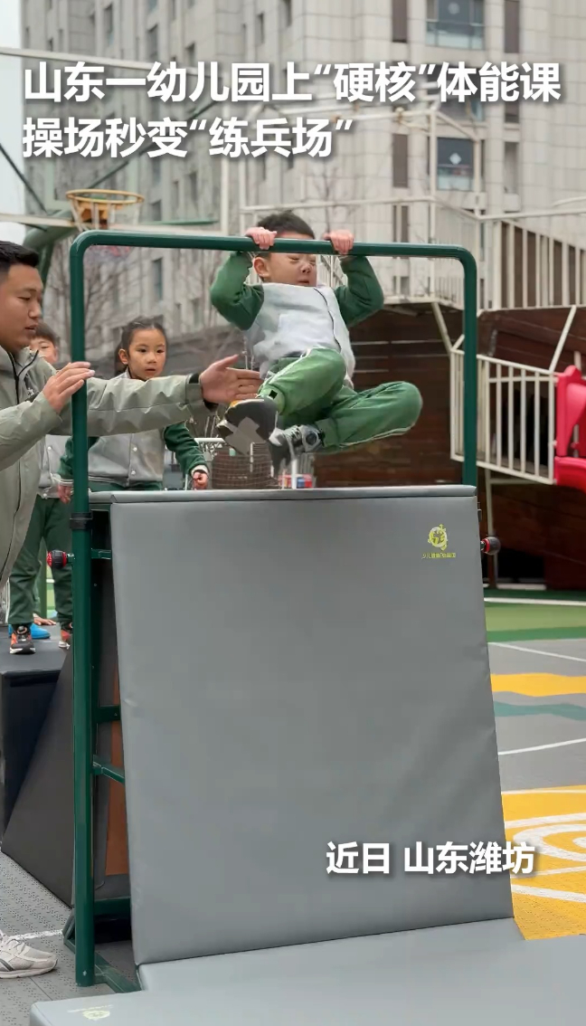 山东一幼儿园上“硬核”体能课,操场秒变“练兵场”