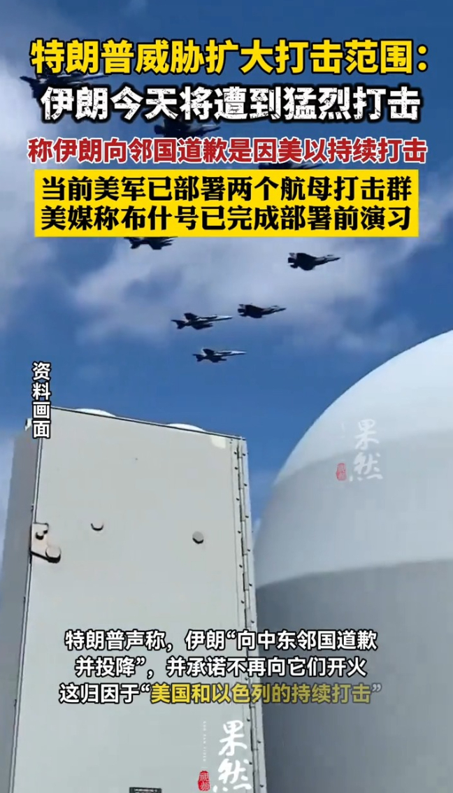 特朗普:伊朗今天将遭到猛烈打击 布什号或已做好部署准备