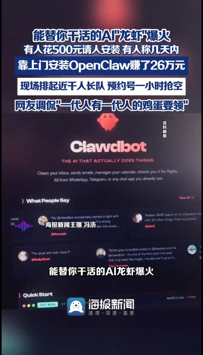 有人花500元请人安装,有人称几天内靠上门安装OpenClaw赚了26万元。