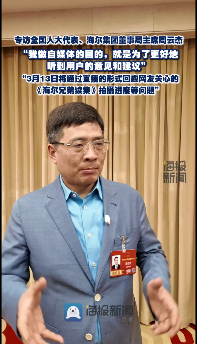 专访全国人大代表、海尔集团董事局主席周云杰:“我做自媒体的目的,就是为了更好地听到用户的意见和建议”