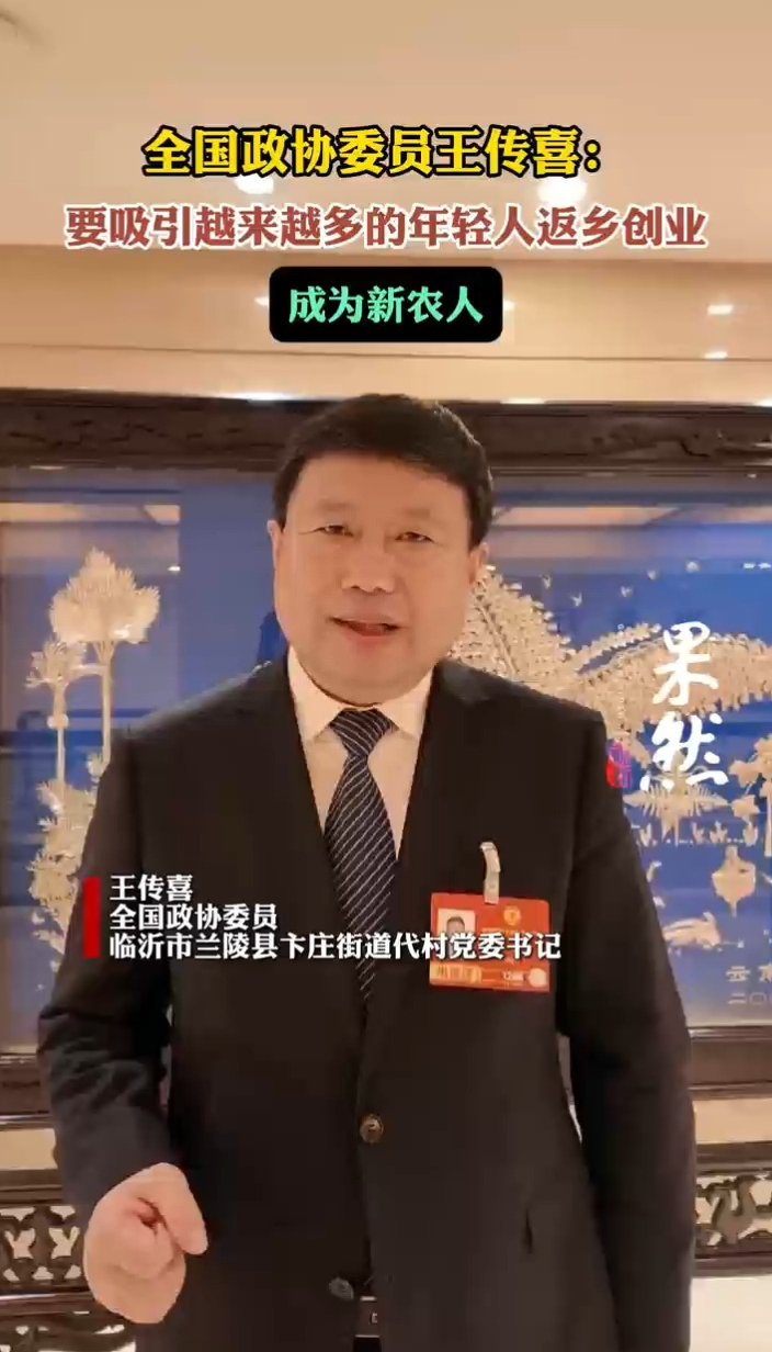 两会声音|全国政协委员王传喜:要吸引更多年轻人成为“新农人”齐鲁晚报·齐鲁壹点客户端 昨天16:09原创全国政协委员,临沂市兰陵县卞庄街道代村党委书记、村委会主任王传喜接受采访时表示,要以科技赋能农业发展,吸引更多年轻人成为“新农人”。(齐鲁晚报·齐鲁壹点记者 李文璇 刘志坤)