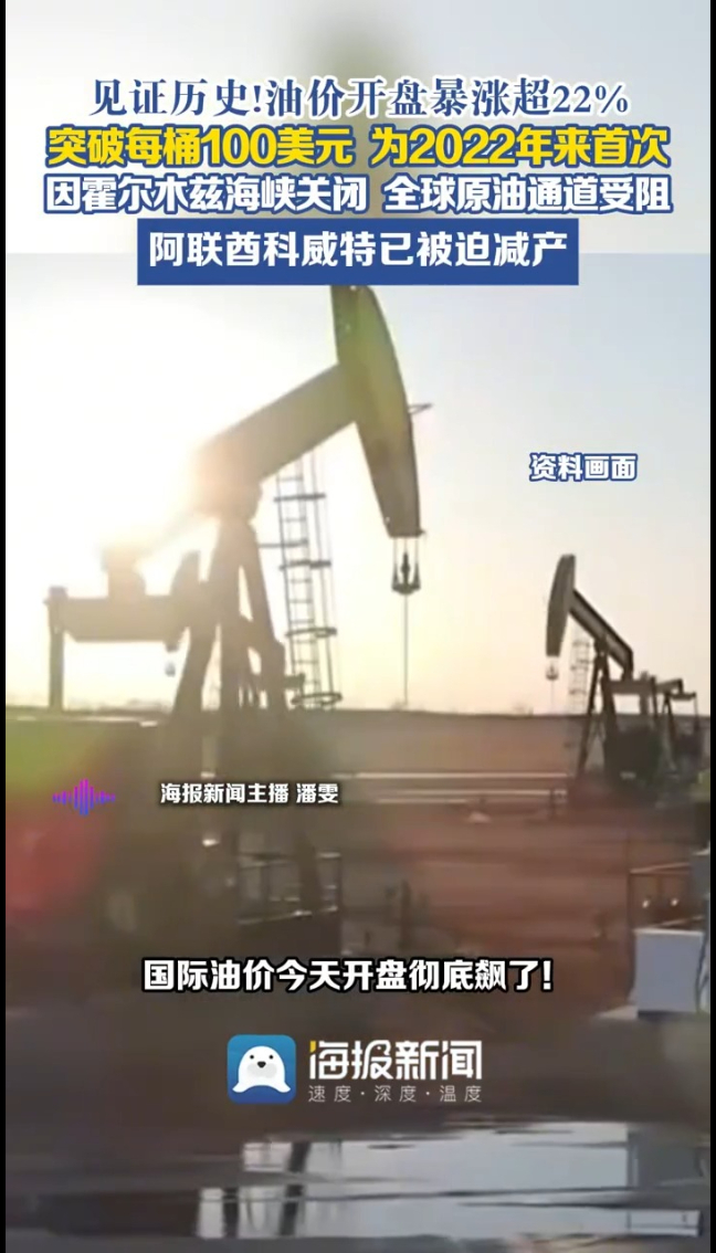 主播说 | 见证历史!油价开盘暴涨超22% 突破每桶100美元