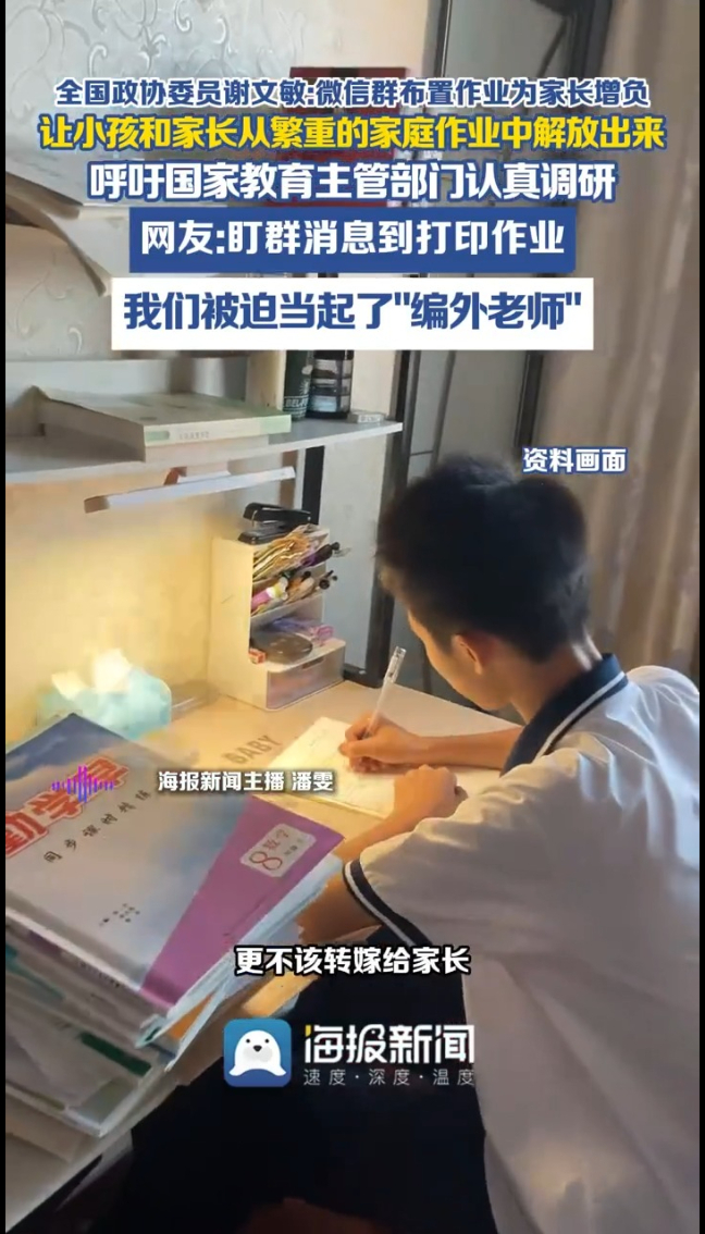主播说 | 全国政协委员谢文敏:微信群布置作业为家长增负,家长被迫当起了“编外老师”