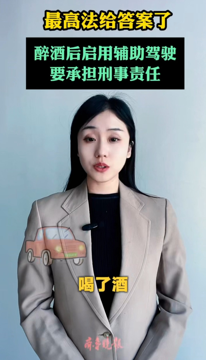 法眼|最高法给答案了!醉酒后启用辅助驾驶要承担刑事责任齐鲁晚报·齐鲁壹点客户端 昨天20:47原创喝了酒,打开辅助驾驶,车子自己跑,我在旁边眯一会儿——算不算酒驾或者醉驾?今天的最高法工作报告给出了答案:算。辅助驾驶的本质是“辅助”而非“替代”,更不可能替人承担法律责任。真正的智能时代,应当是技术服务于人的安全,而不是成为违法者的“挡箭牌”。(齐鲁晚报·齐鲁壹点记者 栾海明)