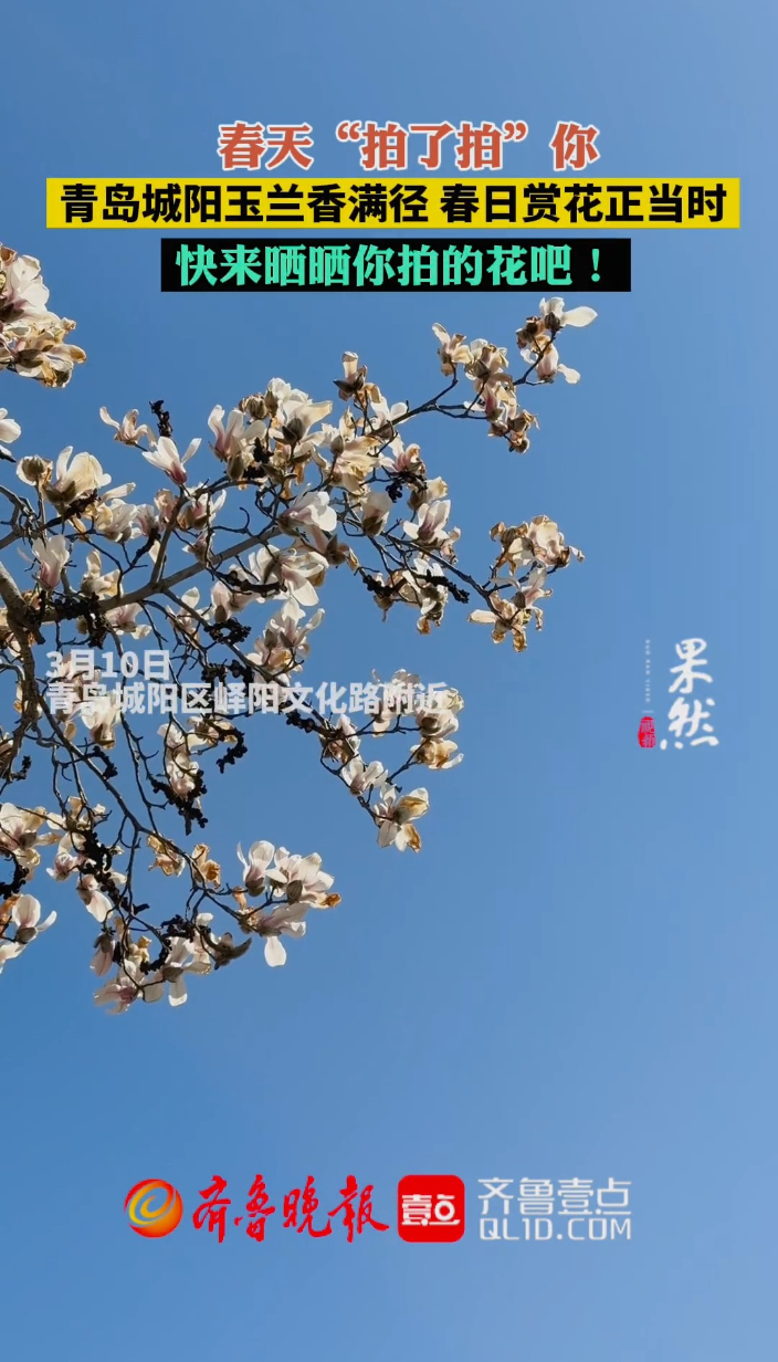 果然视频|快来把春日限定美好收入相册!青岛城阳玉兰已开放齐鲁晚报·齐鲁壹点客户端 14:44原创近日,青岛市城阳区峄阳文化路附近的玉兰花已开放,洁白的花朵缀满枝头,成为春日街头的最美风景线。不少市民、游客纷纷驻足拍照,将这份春日限定的美好收入相册。 (齐鲁晚报·齐鲁壹点 李自强 实习生 王颖馨)