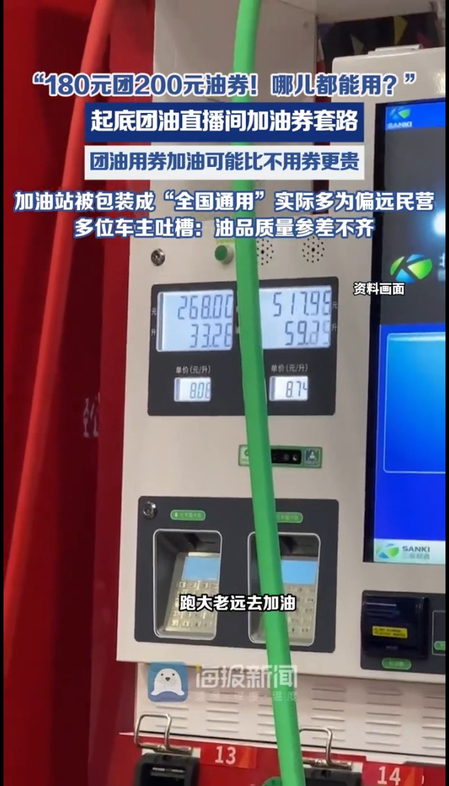 最近油价涨得凶,很多直播间里“加油券”卖得那叫一个火!尤其是那句“180元团200元油券!哪儿都能用!国营民营都可以!”的口号,简直让人心动,恨不得马上下单 。