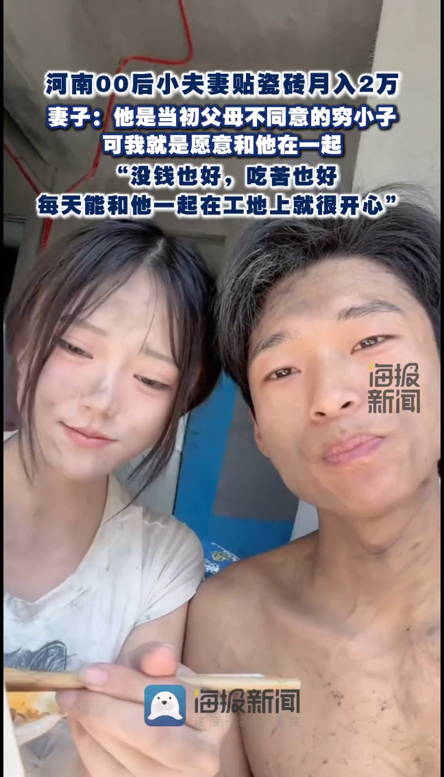 河南00后小夫妻贴瓷砖月入2万,妻子:他是当初父母不同意的穷小子,可我就是愿意和他在一起