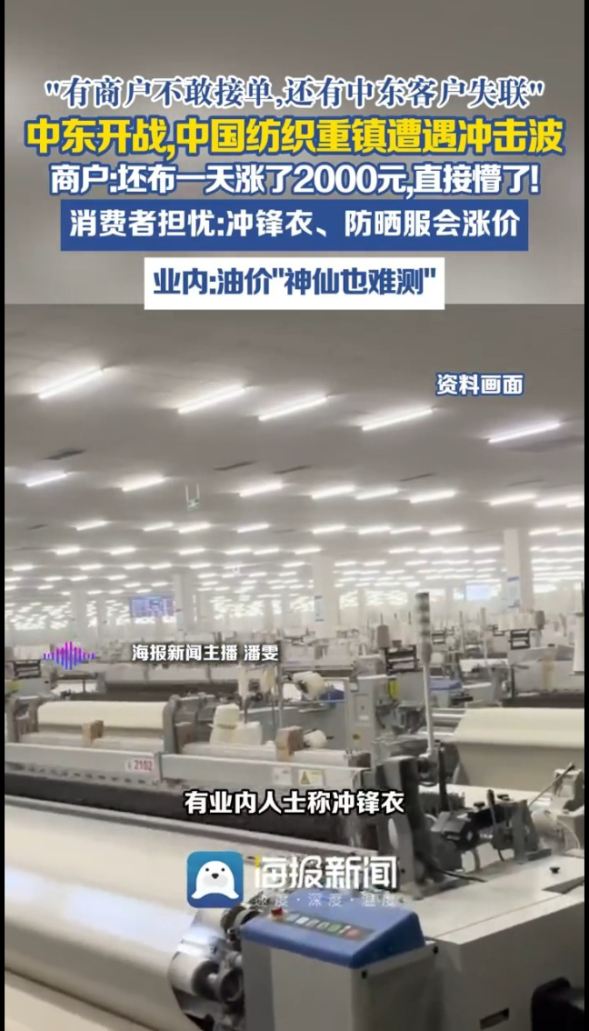 主播说 | 中东开战 中国纺织重镇遭遇冲击波 商户:坯布一天涨了2000元,直接懵了!