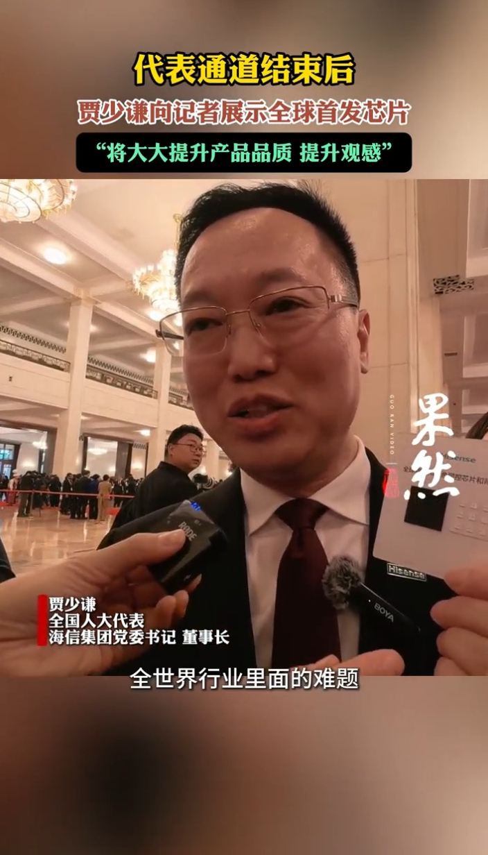 两会声音|代表通道结束后,贾少谦向记者展示全球首发芯片齐鲁晚报·齐鲁壹点客户端 03-12原创3月12日,全国人大代表,海信集团党委书记、董事长贾少谦向记者展示海信在全球首发的AI光色同控芯片和背光芯片,表示芯片将大幅提升产品的品质。(齐鲁晚报·齐鲁壹点记者 杨璐 李文璇 刘志坤)